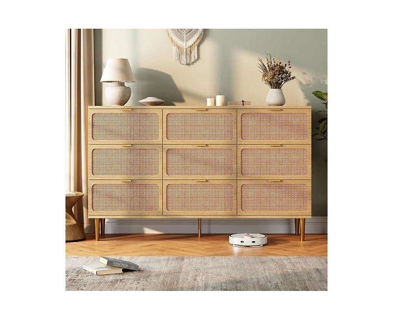 Gaomon Rattan 9 Drawer Dressers for Bedroom