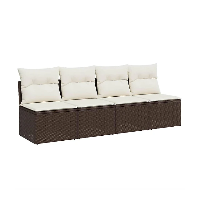 Garden Sofa Brown, Cream White Poly Rattan, Powder-Coated Steel
