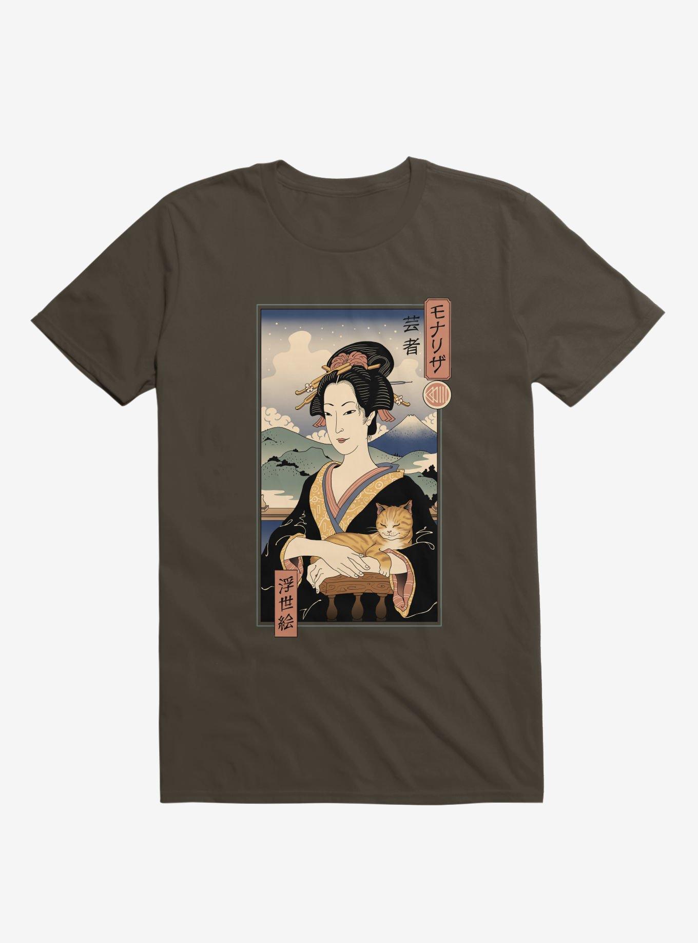 Geisha Cat Lisa Ukiyo-e Brown T-Shirt