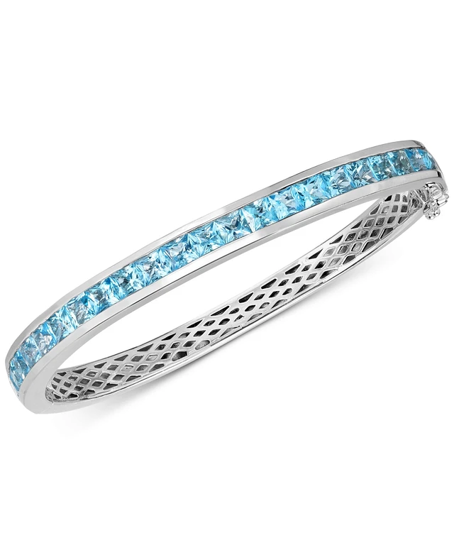 Blue Topaz (14 ct. t.w.) & Diamond (1/8 ct. t.w.) Bangle Bracelet in Sterling Silver
