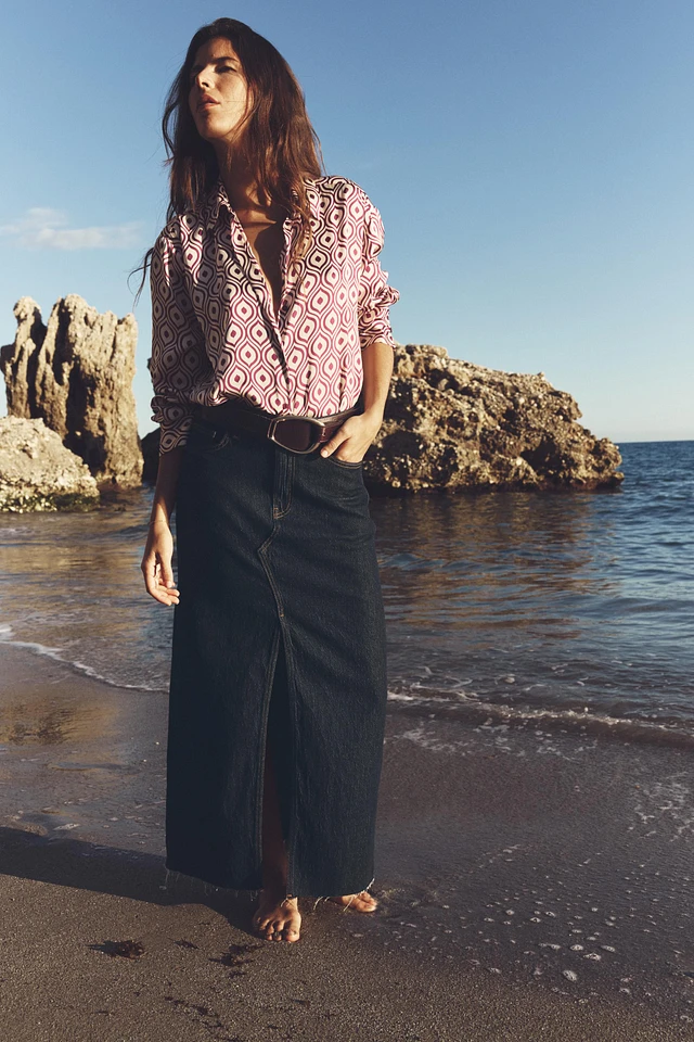 GEOMETRIC PRINT SATIN EFFECT SHIRT