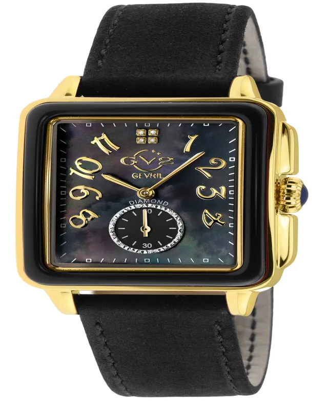Gevril Women's Bari Enamel Swiss Quartz Italian Black Leather Strap Watch 34mm