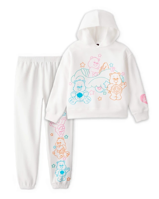 Girls 2-Piece Care Bears Pullover Hoodie & Active Pants Set - White