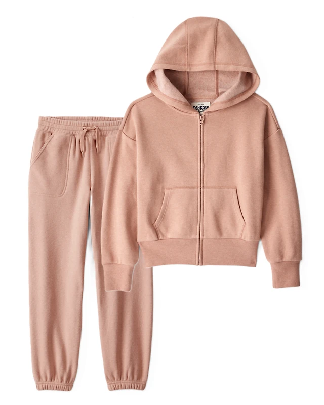 Girls 2-Piece DayDream Fleece Hooded Zip-Up Jacket & Joggers Set - Pink