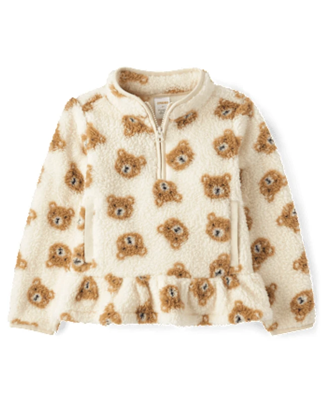 Girls Bear Sherpa Half Zip Pullover - Little Essentials
