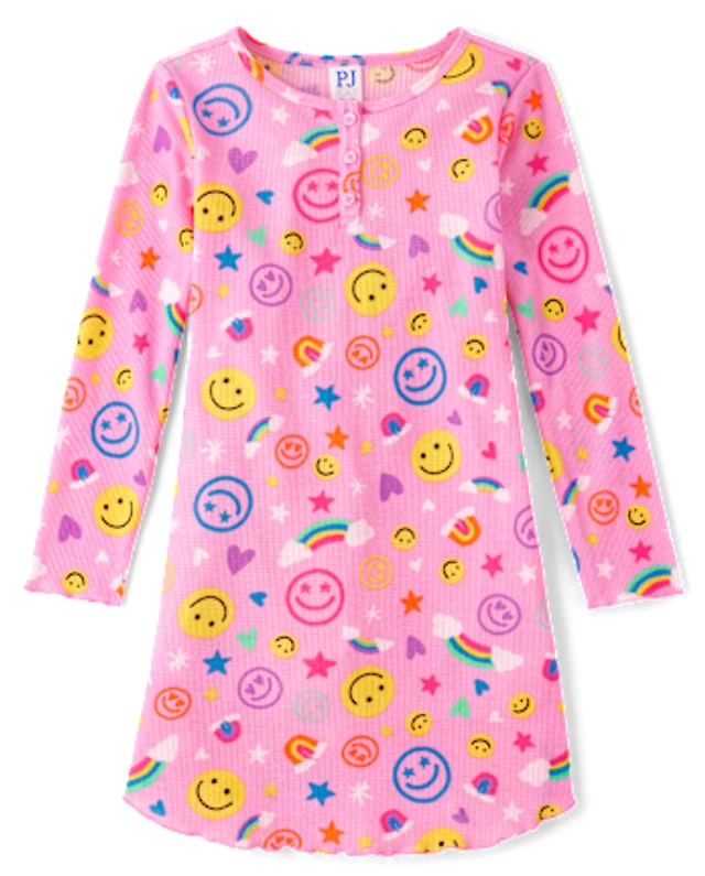 Girls Floral Butterfly Snug Fit Cotton Henley Pajamas