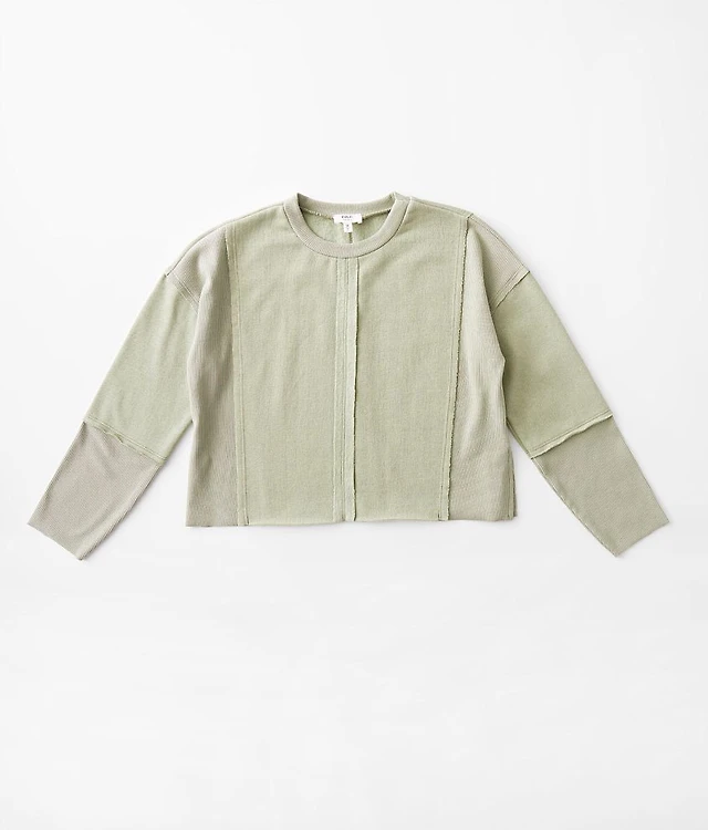 Girls - Raw Edge Hooded Henley Sweatshirt