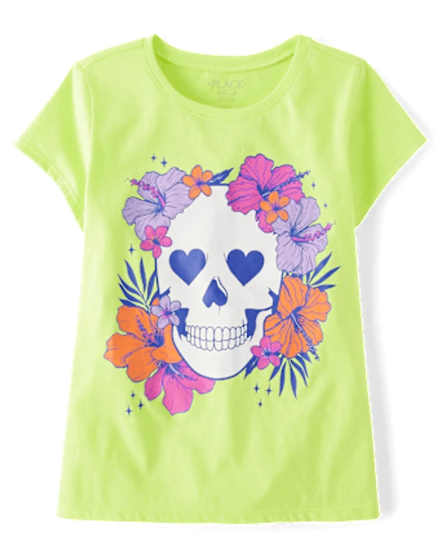 Kids Glow Skeleton Peace Sign Graphic Tee