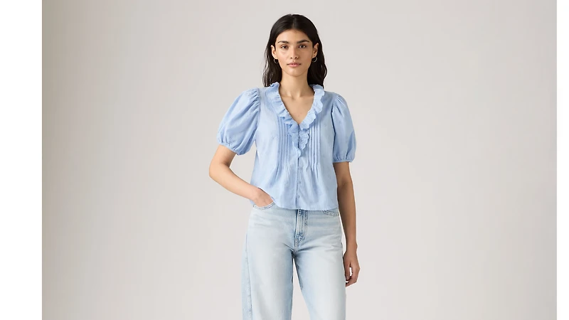 All flutter, no fuss. Our Giselle Ruffle Blouse features a soft scoop neckline with ruffle detailing, a button-up front and an easy standard fit.