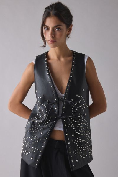 Glamorous Steffie Studded Tie-Front Faux Leather Vest in Bloomington, MN