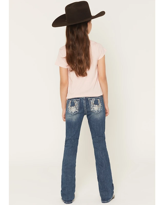 Grace LA Girls' Medium Wash Horse Outline Bootcut Jeans