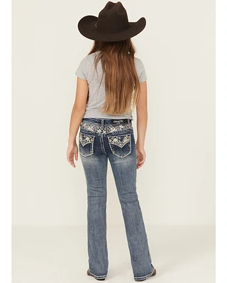Grace LA Girls' Medium Wash Mid Rise Floral Fleur de Lis Bootcut Jeans