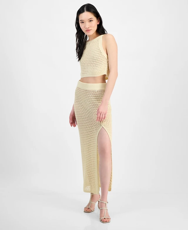 Guess Women's Pointelle Fringed-Hem Midi Skirt