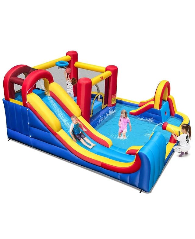 Gymax Inflatable Water Slide Giant Kids Water Park with Double Slides without Blower