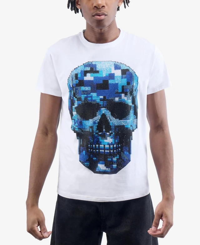 heads or tails Men's Pixel Skull Rhinestone Crew T-Shirt