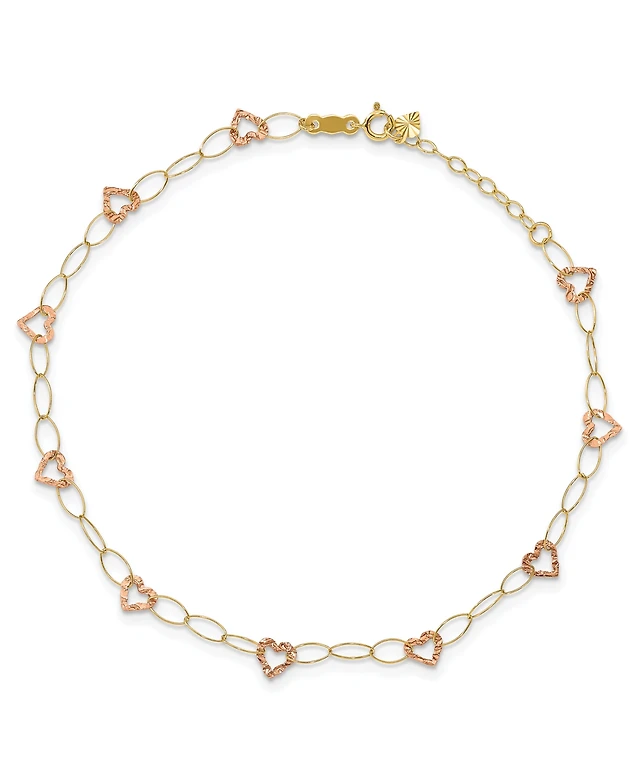 Heart Anklet With Adjustable 1" extension in 14k Yellow and Rose Gold