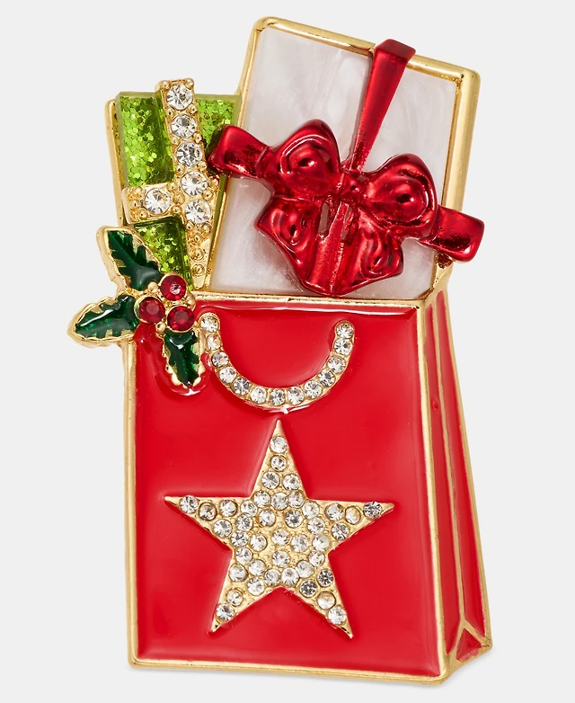 Holiday Lane Crystal & Glitter Macy's Shopping Bag Pin, Macy's Exclusive