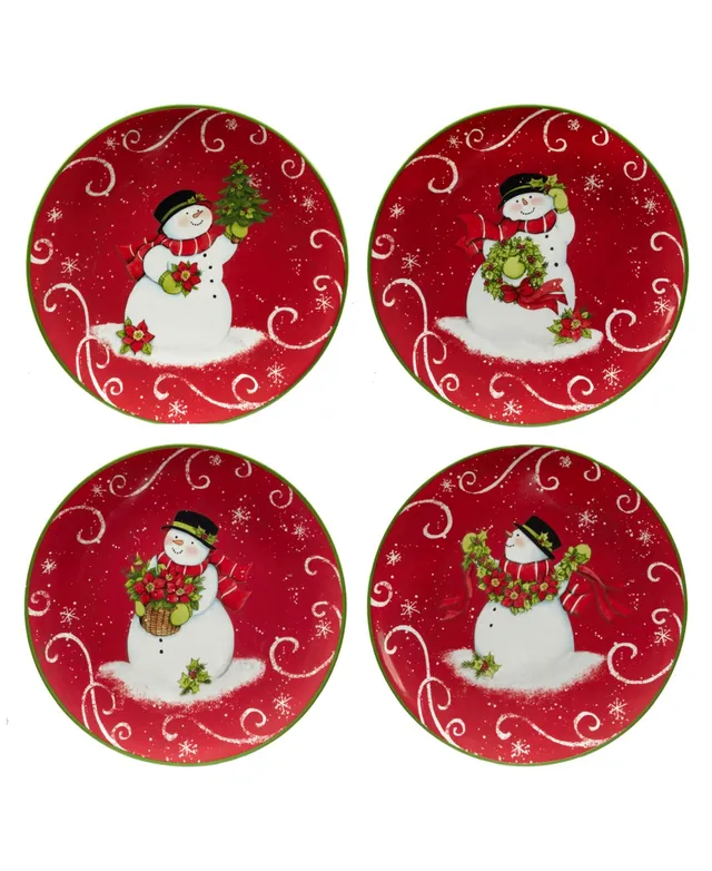 Holiday Magic Snowman 4 Piece Dessert Plate Set