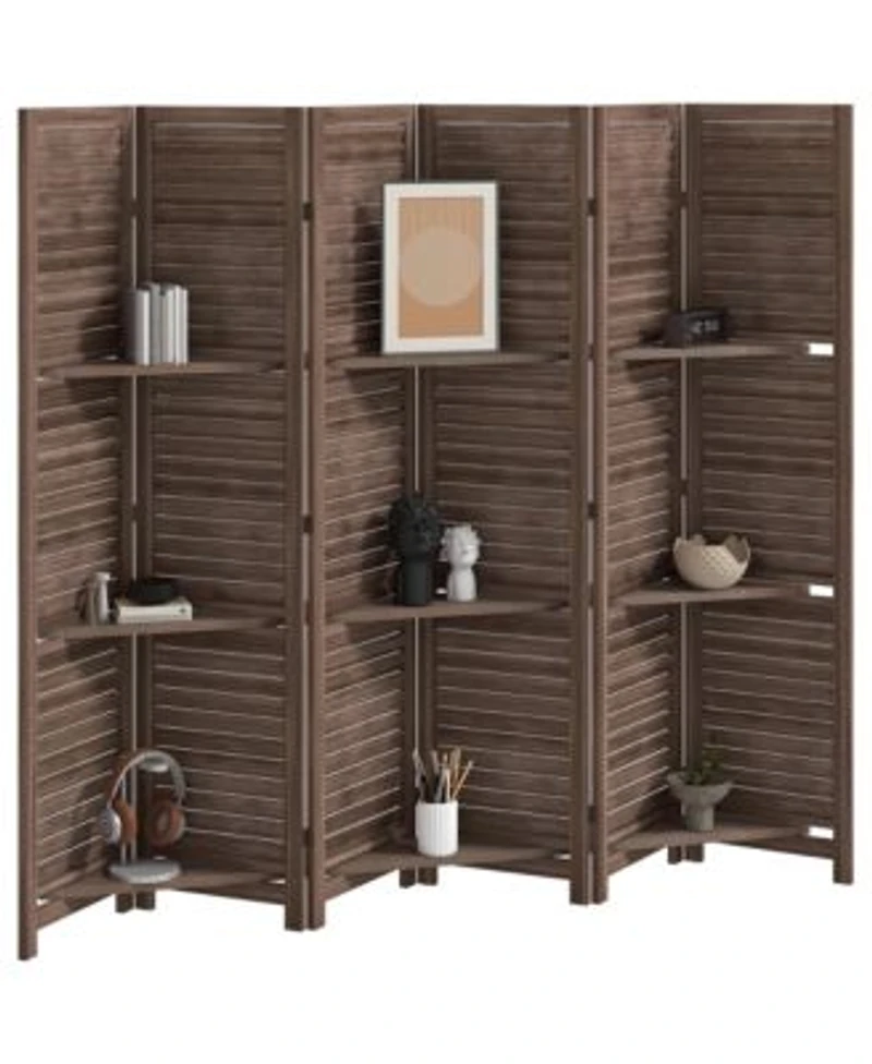 Homcom 6 Panel Privacy Screen Room Divider With 3 Shelves