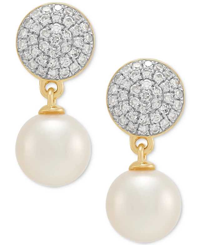 Honora Cultured Freshwater Pearl (6mm) & Diamond (1/4 ct. t.w.) Drop Earrings in 14k Gold