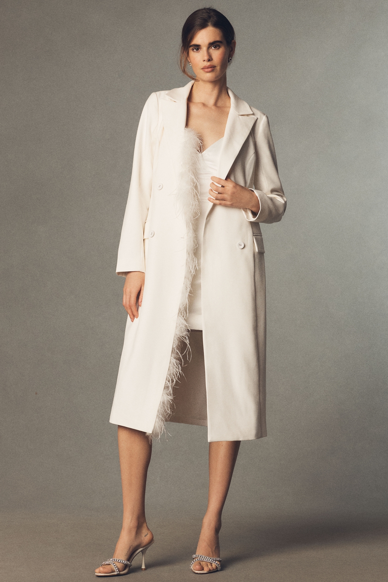 Hutch Faux-Feather Double-Breasted Coat