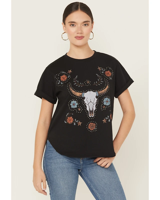 Idyllwind Women's Studded Bull Skull Short Sleeve Graphic Tee