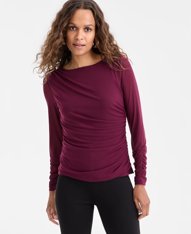 I.n.c. International Concepts Petite Ruched Long-Sleeve Top, Macy's Exclusive