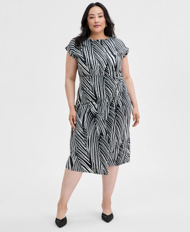 I.n.c. International Concepts Plus Printed Faux-Wrap Midi Dress, Exclusively at Macy's