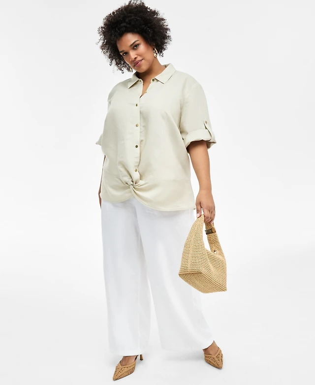 I.n.c. International Concepts Plus Size Linen-Blend Twist-Hem Shirt, Exclusively at Macy's
