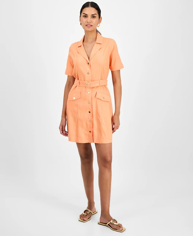 I.n.c. International Concepts Women's Linen-Blend Belted Mini Dress, Exclusively at Macy's