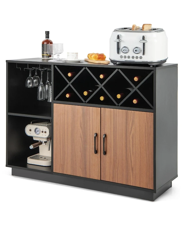 Gymax 2-Door Liquor Coffee Bar Cabinet Freestanding Buffet Sideboard Wine Rack Drawers