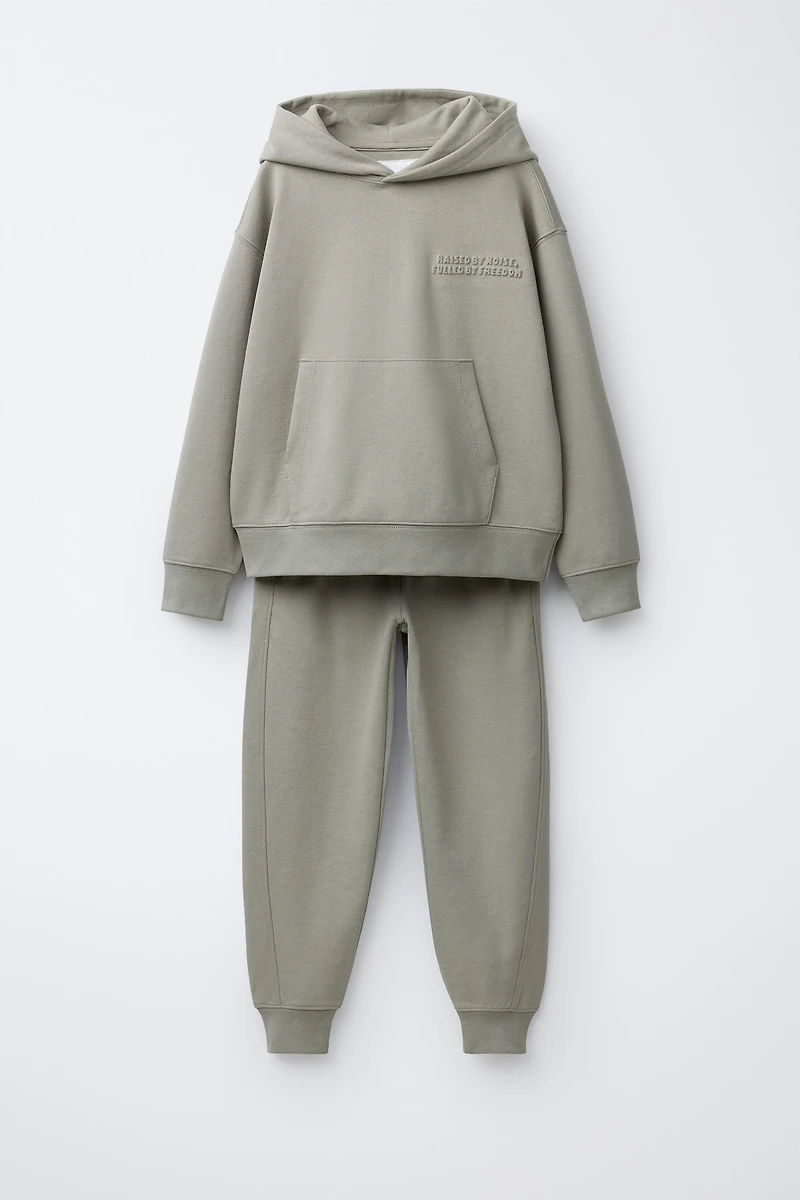 INTERLOCK SWEATSHIRT AND JOGGER SET WITH EMBOSSED TEXT