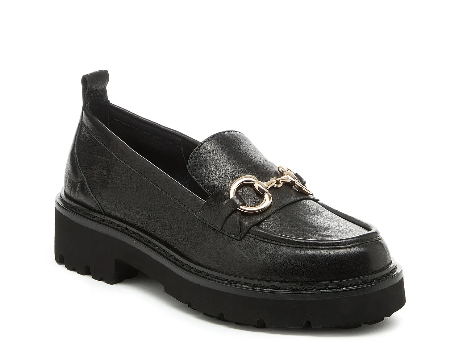 Add trendy appeal to your loafer collection with the Jemmie from Kelsi Dagger Brooklyn. This leather pair features a thick platform midsole, classic metal bit accent at the cut-away lip, and a moc toe for a fresh take on a classic silhouette.