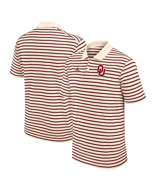 Jordan Men's Tan/Crimson Oklahoma Sooners Striped Primary Logo Performance Polo Shirt
