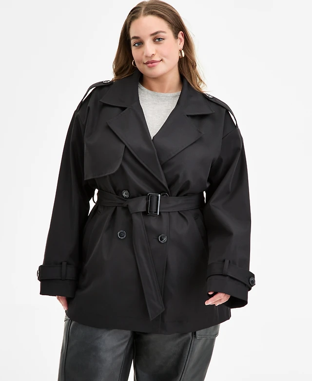 Steve Madden Plus Double-Breasted Belted Trench Coat