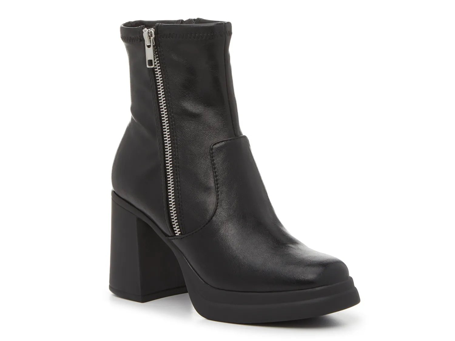 Add a trendy touch to a classic style with the Kamilia booties from Steve Madden. The chunky silhouette, strong block heel, and zipper accent adds fashion-forward details to a simple design.