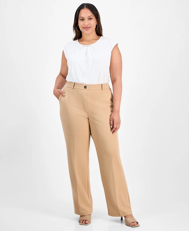 Kasper Plus Size Faux-Fly Straight-Leg Pants