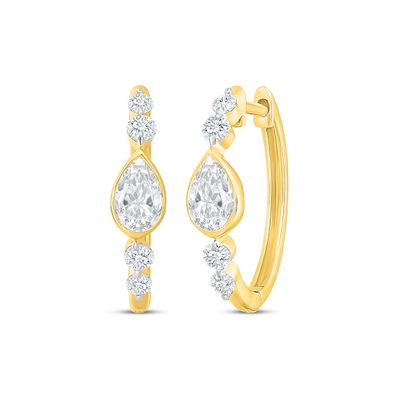 KAY Lab-Grown Diamonds Pear-Shaped & Round-Cut Hoop Earrings 1 ct tw 10K Yellow Gold