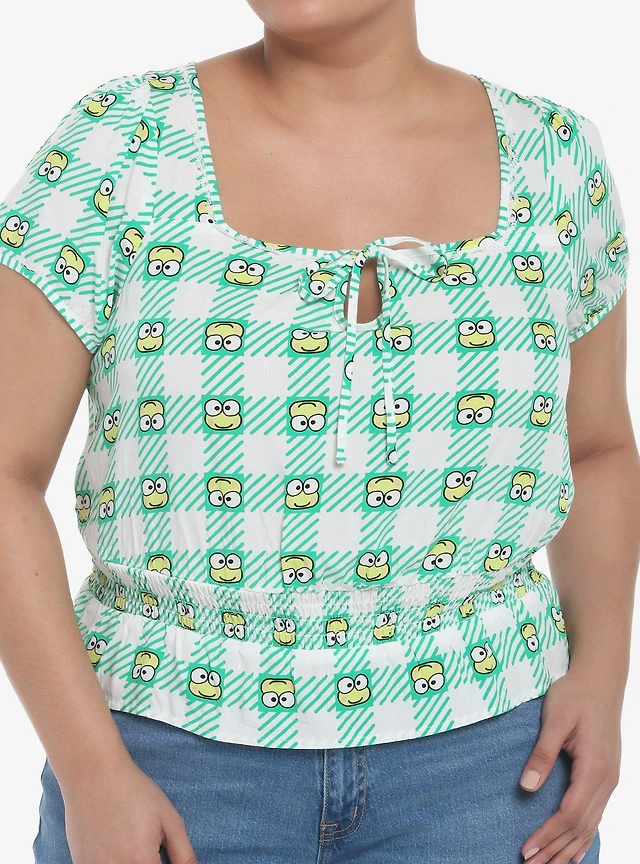 Keroppi Gingham Peplum Girls Woven Top Plus