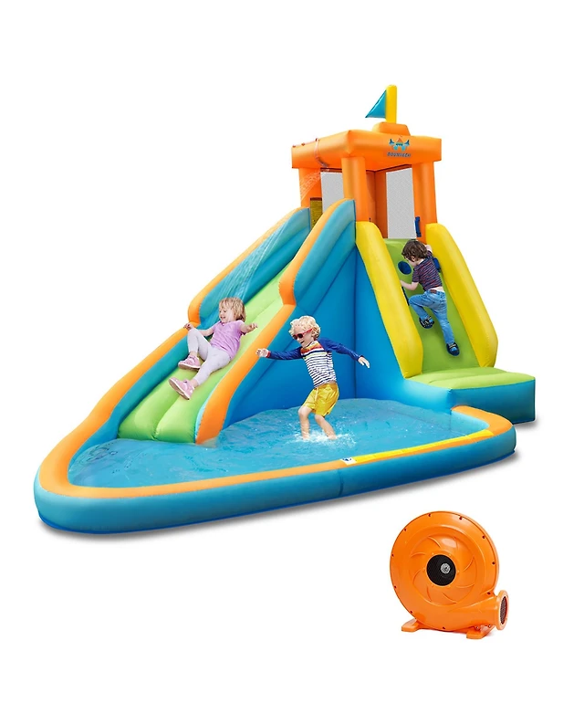 Inflatable Water Slide Kids Bounce House Splash Water Pool with 735W Blower