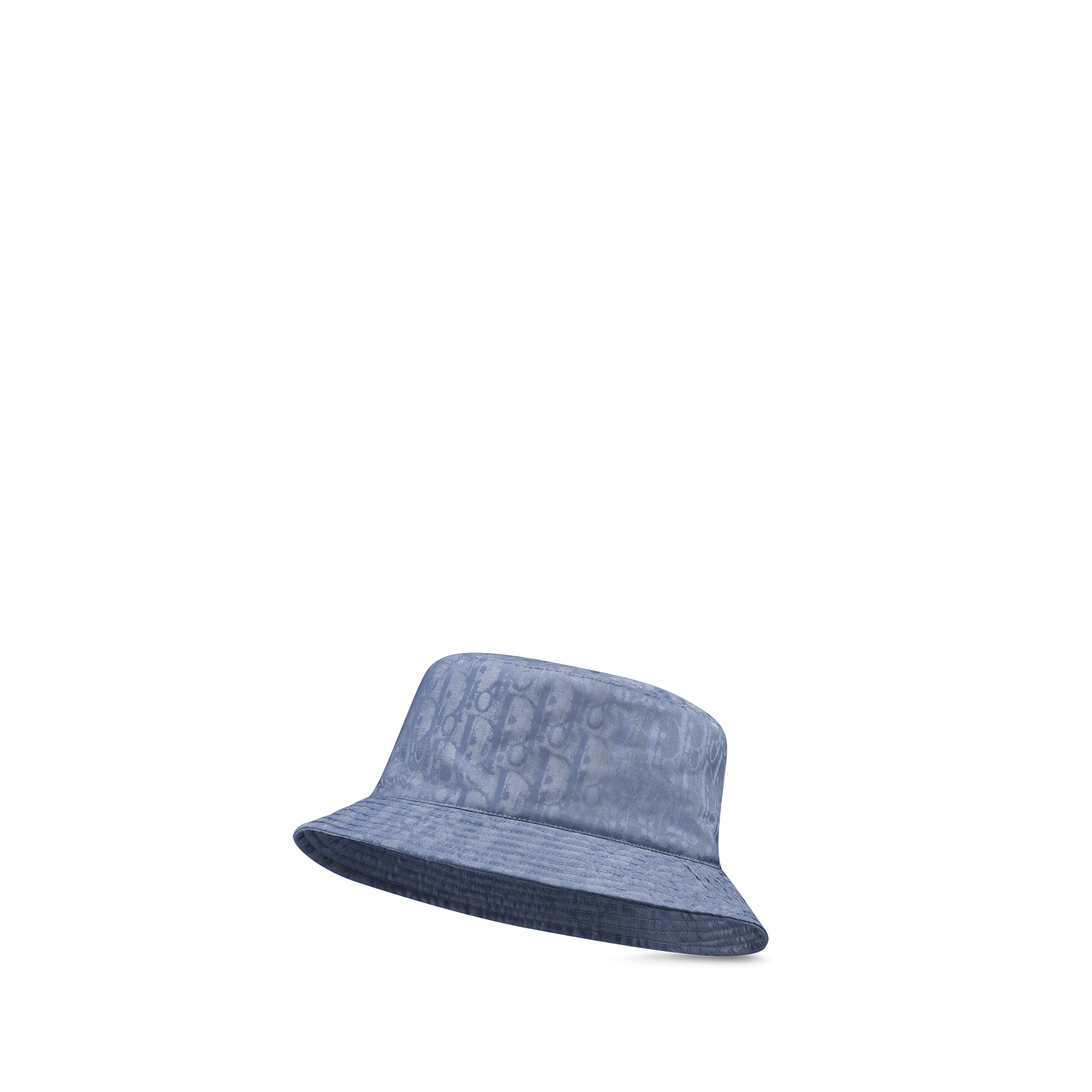 The bucket hat honors House heritage with the iconic Dior Oblique motif. Crafted in gray-blue technical jacquard with a satin finish, it features a simple, classic shape. The bucket hat will top off any outfit in the collection. Main composition: 74% polyamide, 26% polyester. Navy blue lining composition: 100% cotton. Filling composition: 100% polyester. Water-repellent