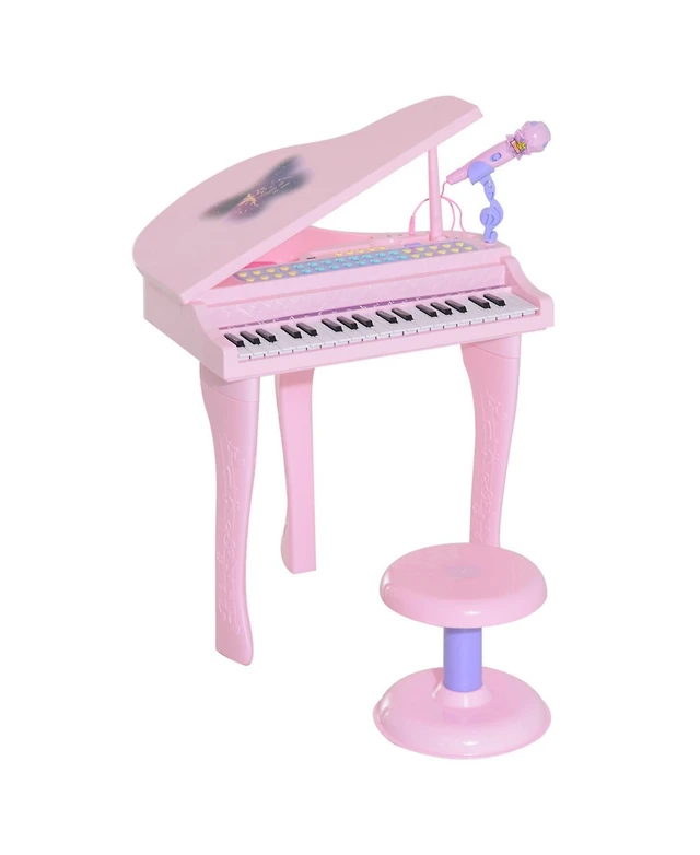 Qaba Kids Toddler Toy Piano Keyboard w/ Sitting Stool & Working Microphone,