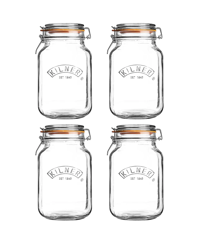 Kilner Square Clip Top Jar 51 oz, Set of 4