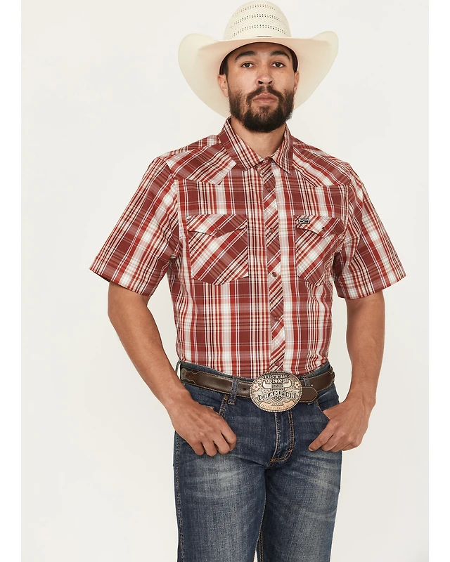 Cody James Men's Plaid Print Short Sleeve Snap Western Shirt