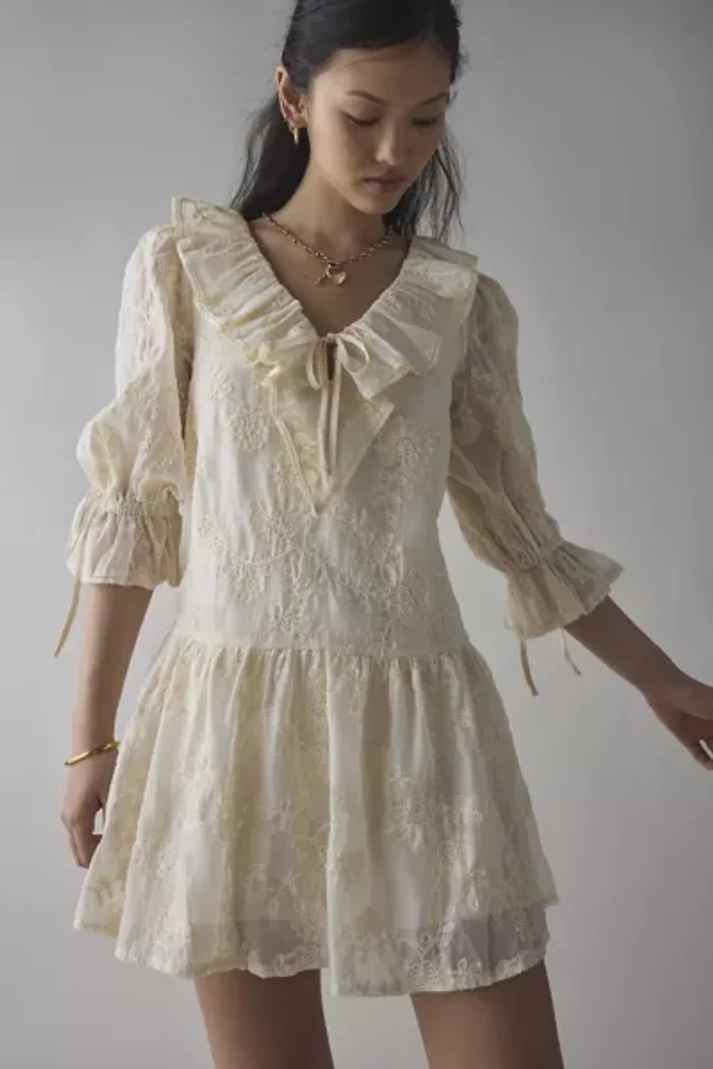 Kiss The Sky Lace Ruffle Collar Babydoll Mini Dress