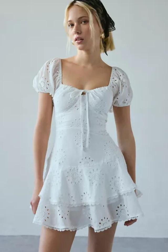 Motel Belinda Eyelet Lace Y-Neck Halter Mini Dress