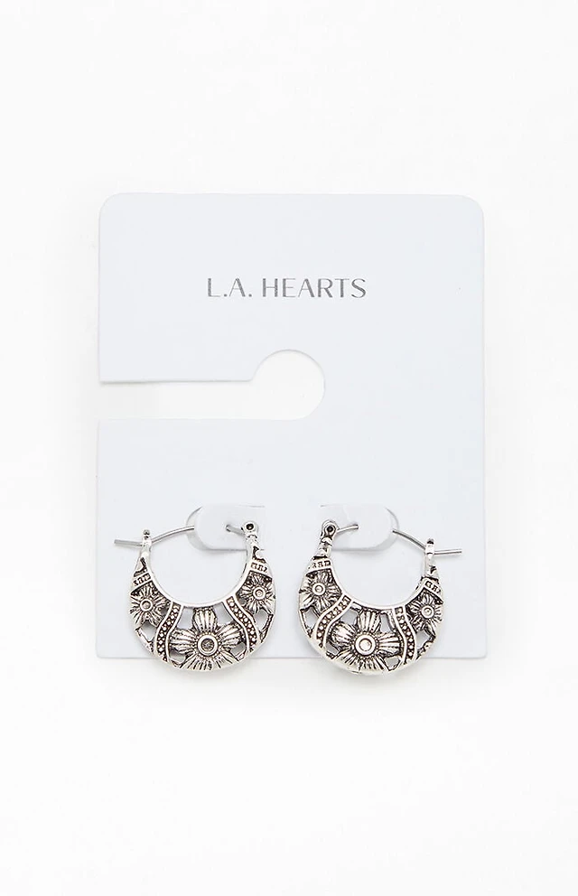 LA Hearts Etched Flower Hoop Earrings