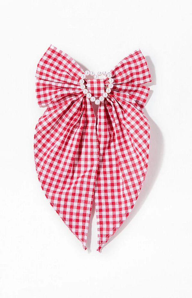 LA Hearts Gingham Pearl Heart Hair Clip