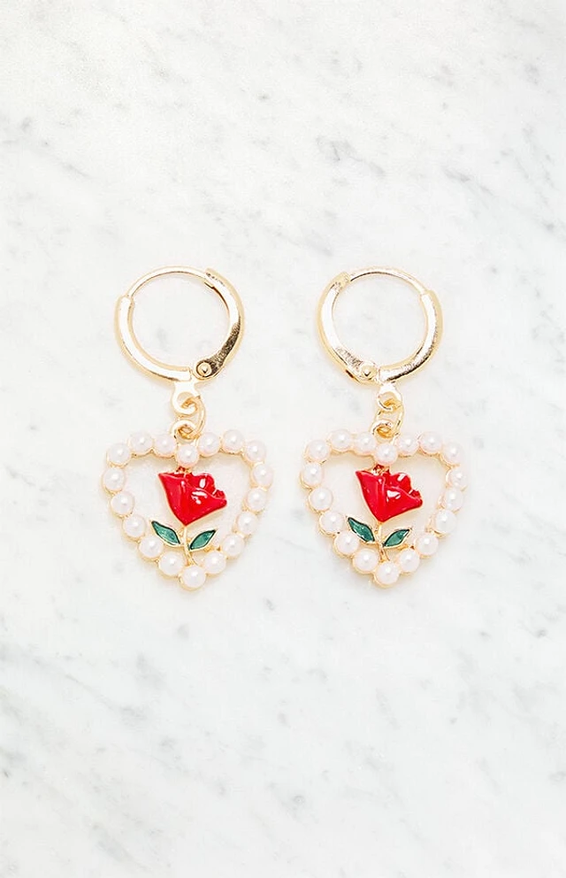 LA Hearts Pearl Heart Rose Hoop Earrings