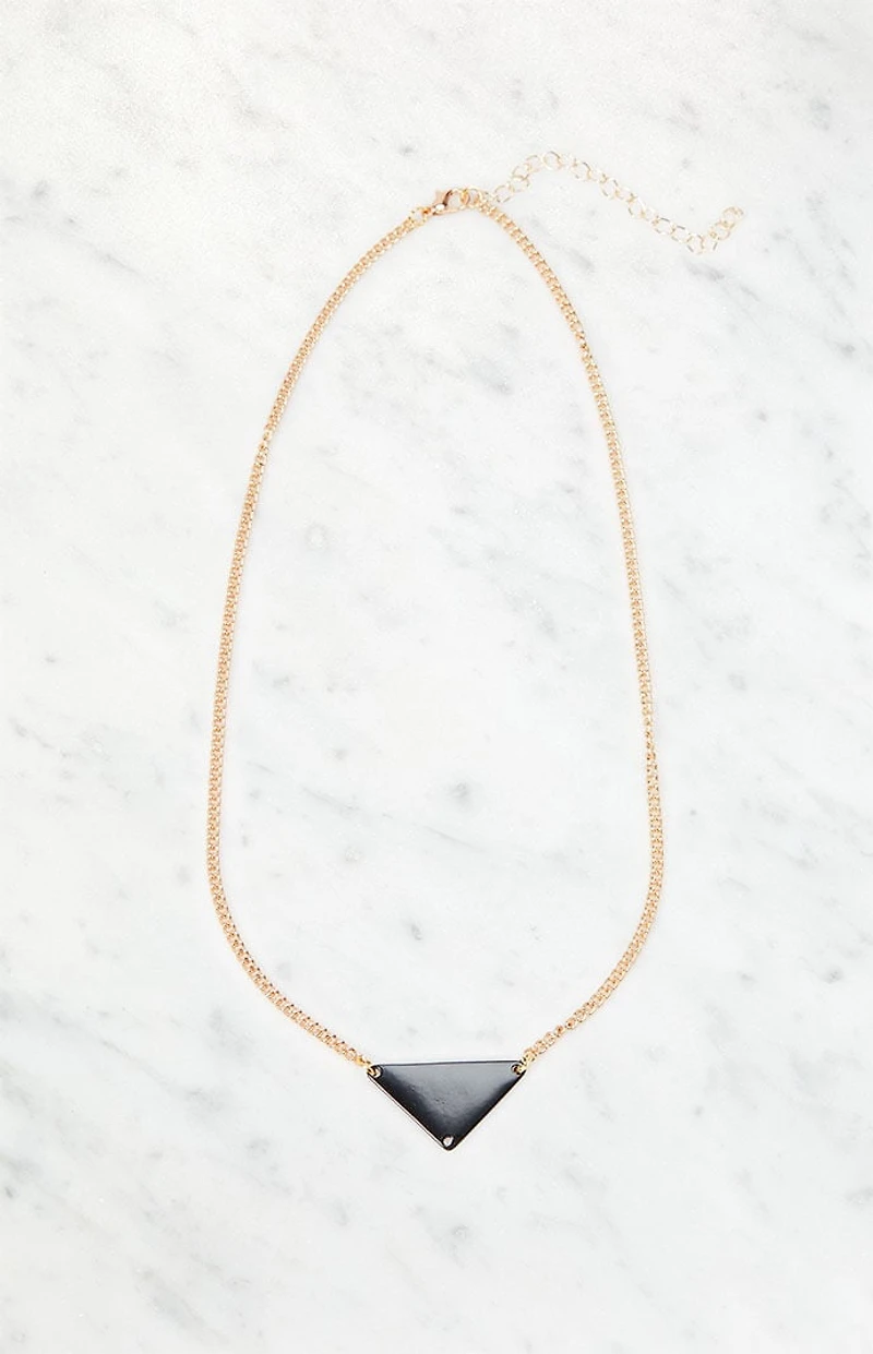 La Hearts gives your look a luxe finish with their Triangle Pendant Necklace. This new necklace has a chain link design, a black pendant, and an adjustable lobster clasp closure.